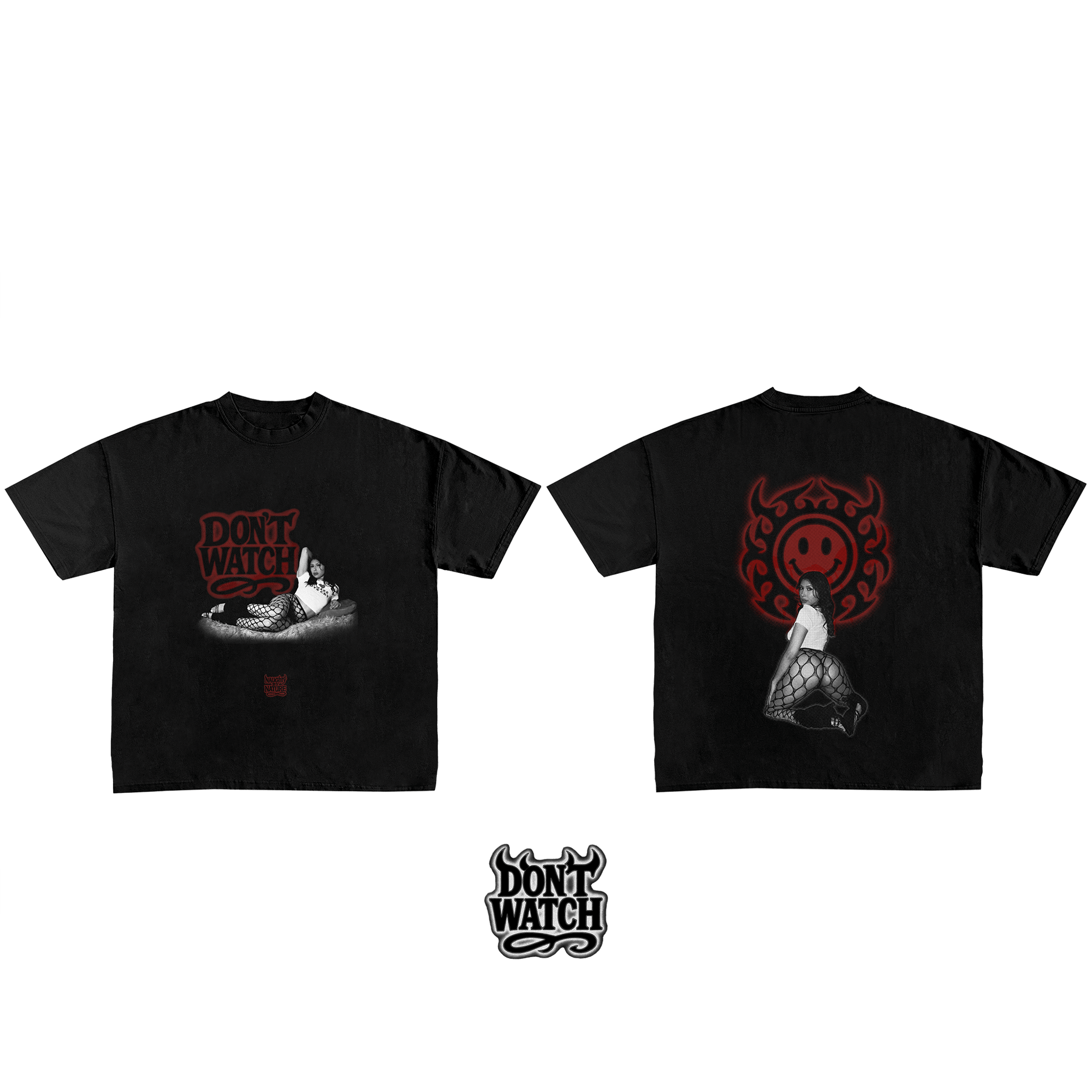 The Second Issue Tee pulls from the mythos of Don’t Watch No. 2, with cover star Penelope Woods draped in mesh and shadow.